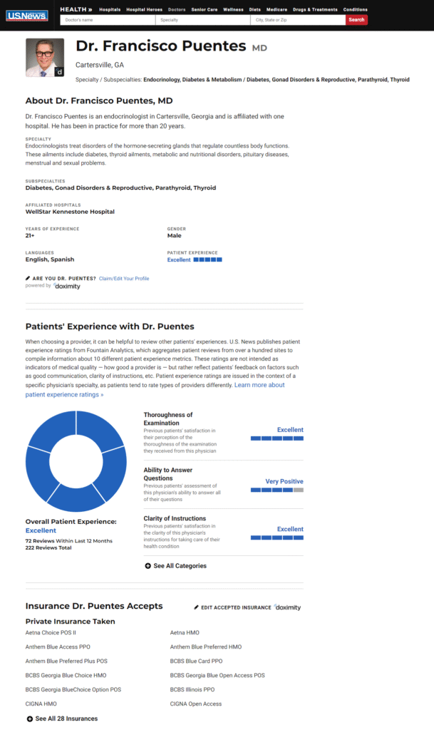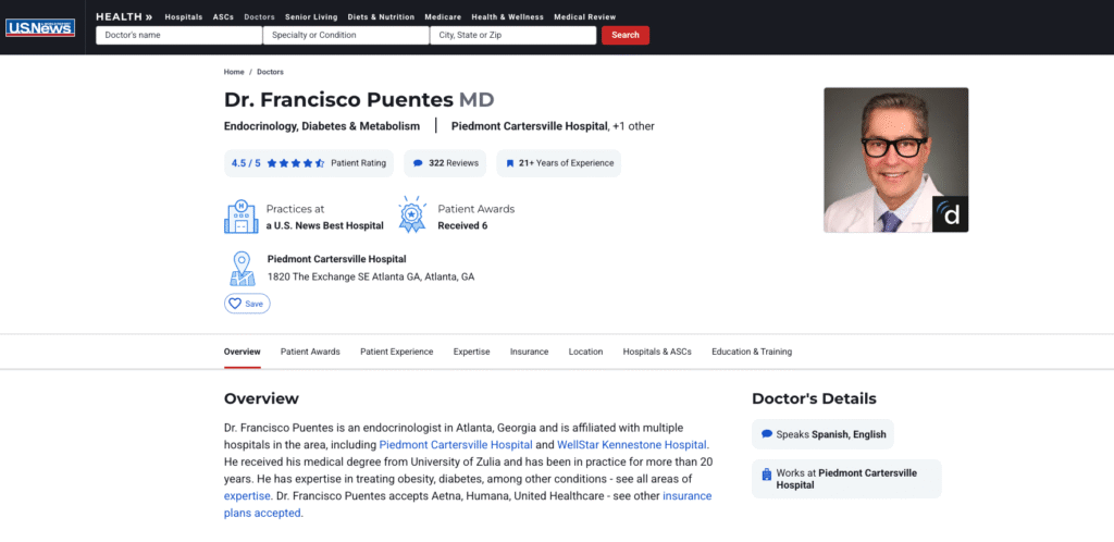 Today, Dr. Puentes is the driving force behind Endocrine Specialists of Georgia, LLC, a practice dedicated exclusively to Adult Endocrinology. Board Certified in Endocrinology, Diabetes, and Metabolism with over three decades of experience, Dr. Puentes offers unparalleled expertise in the diagnosis and treatment of various endocrinological disorders, including Hypothyroidism, Hyperthyroidism, Diabetes Mellitus, Osteoporosis, Calcium Disorders, Obesity, Pituitary Disorders, Gynecomastia, Thyroid Carcinoma, Testosterone Deficiency (Hypogonadism), and Menopause.